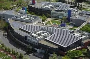 谷歌总部新办公大楼、停车棚上都安装了光伏电站,被太阳能电池板覆盖的谷歌总部,宛如一片蓝色海洋,到处都是太阳能的足迹。
