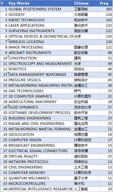 ❶ 从两家的专利簇来看,地信行业所涉及的知识域是非常广泛的,除了卫星导航,还包括光电、通信、材料、计算机、制造等领域;