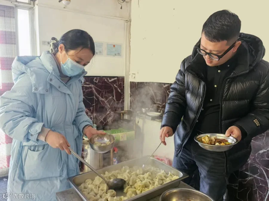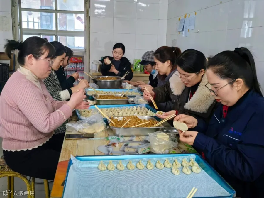食堂内人声鼎沸,热气裹挟着鲜浓饺香漫溢四方,案板上雪白的饺皮堆叠整齐,师傅们手脚麻利地擀皮填馅,一个个饱满的饺子排队入锅,沸水翻滚间,鲜香愈发醇厚。