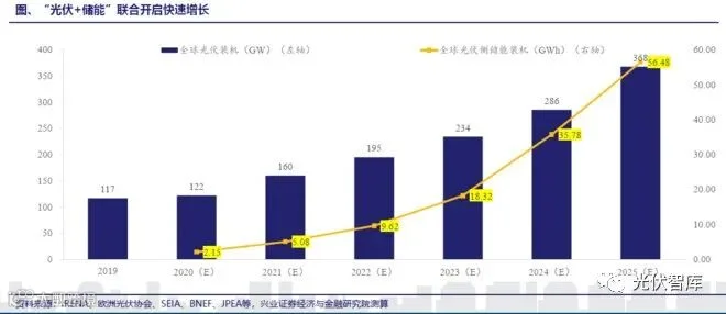 光伏平价,搭配储能以后,将为行业带来长期、可持续的发展动力,预计2025年全球光伏新增装机368GW。