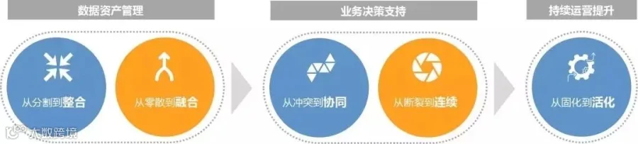 从分割到整合:将原本各部门各自为战的业务数据打通。