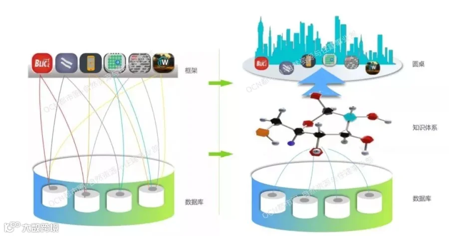 依托“知库”平台,我们通过数据治理模式,打破了传统的一个业务对应一个系统,形成一套数据的单一模式。通过中间层即知识体系的搭建,实现对多源数据库中的数据进行抽取梳理,构建核心的知识管理模型,对数据进行知识化管理,将业务办理过程中的非空间化的数据与空间进行关联等。在沉淀有价值的数据的同时,实现数据的有序且可持续化运作。