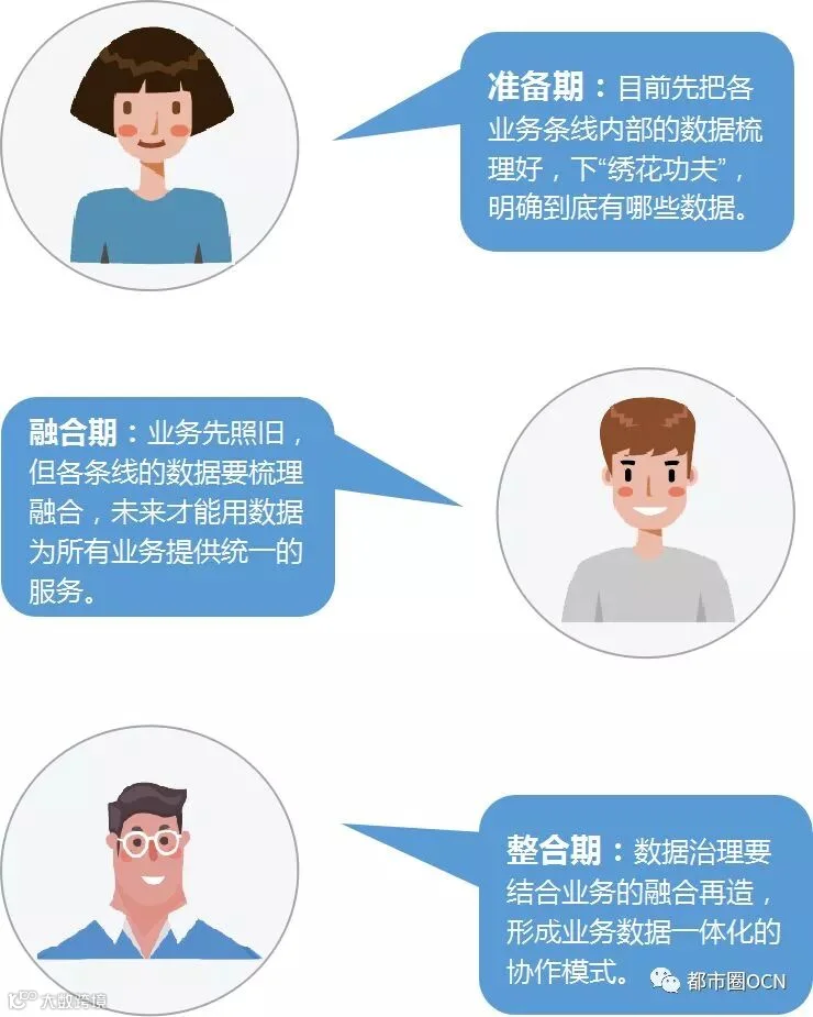 结合我们与多地的自然资源部门的交流及调研情况,我们认为数据治理可以分为三个阶段:
