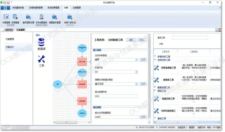 利用可视化数据模型定制工具,数据模型发布管理工具等将数据模型固化并落到系统中,来实现对模型的管理。目前我们梳理了包括双评价、审批、用途管制、监测评估预警等的空间规划分析数据模型体系。