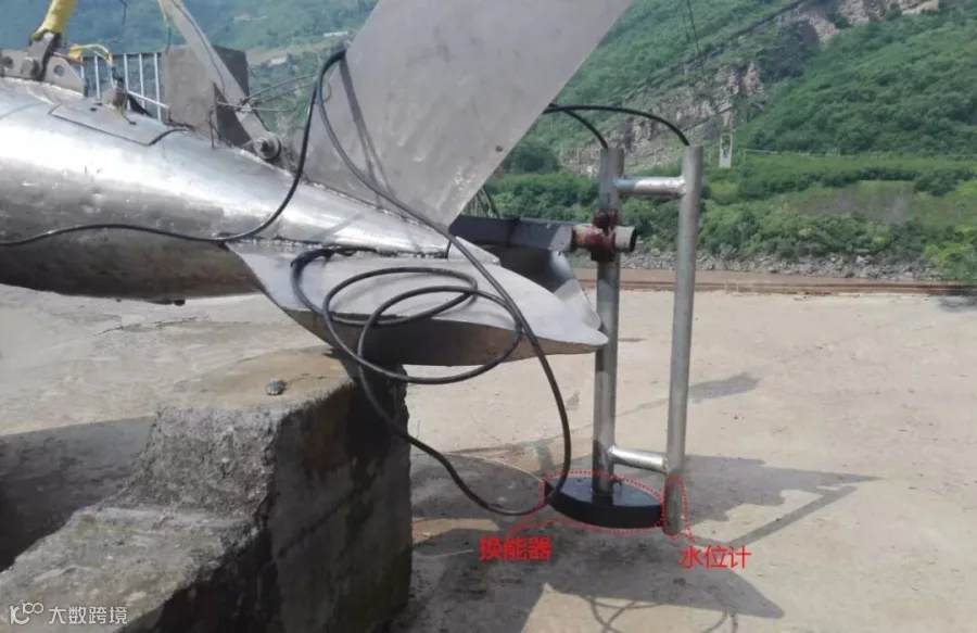 首先将铅鱼与换能器、水位计固定。换能器由套筒直接固定,水位计隐藏在换能器后的套筒内。