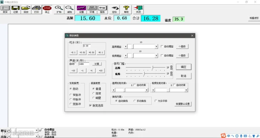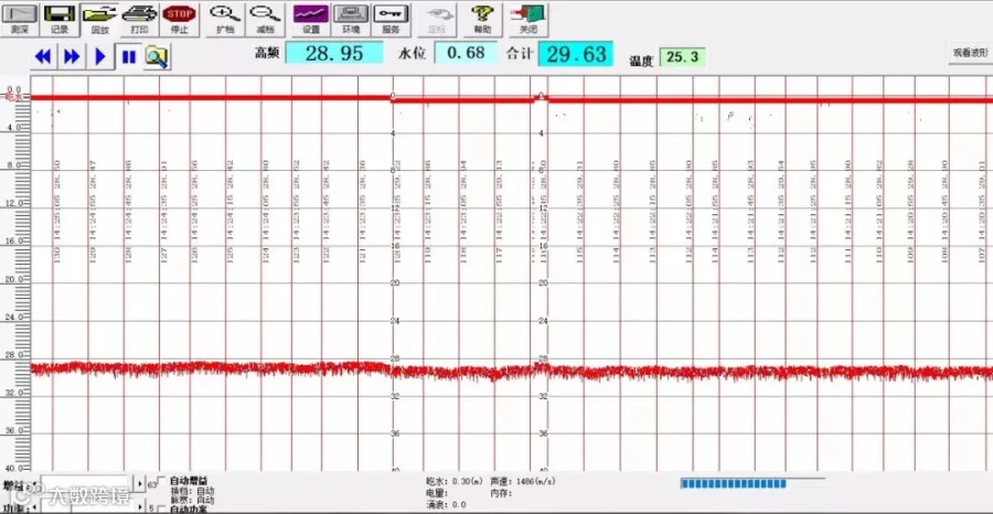 而中海达HD-511程控式测深仪一改此种作业方式,先将换能器、水位计与铅鱼固定,保持换能器垂直向下,并通过水位计实时测量换能器吃水。然后通过无线实时远程传输的方式将测深数据传回岸边电脑,电脑软件将回传的模拟信号与水位计数据转为正确的水深值。之后结合测流计的数据,得出最终的断面流量。这种方式相对之前,提高了测深的精度,同时,不需要将铅鱼放至水底,提高了工作效率。