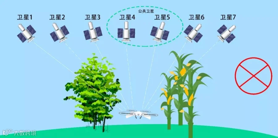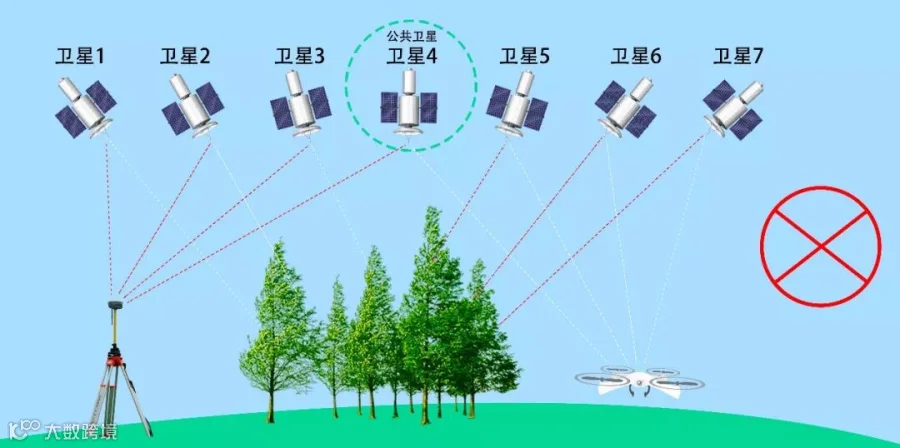 基站布设在树林底下并且与无人机相隔一边