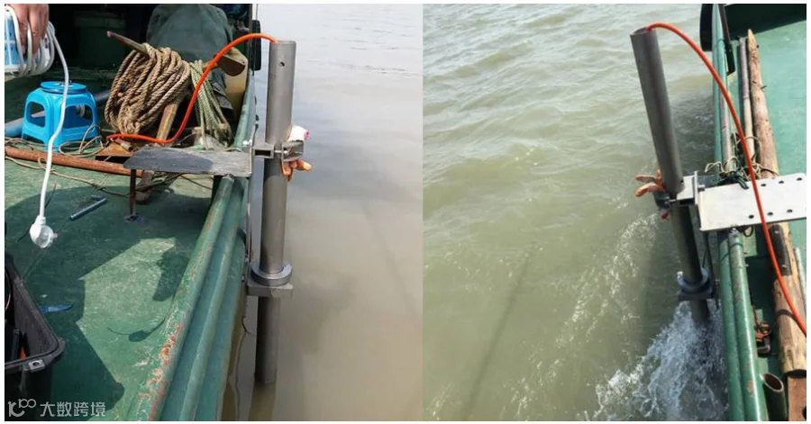 两款仪器均采用舷侧安装方式,尽量安装于距船艏相同距离的同一平面上。安装过程中通过使用支架来确保仪器不会随船前行而发生转向,安装时确保换能器探头完全入水,不会受到波浪涌动和发动机产生的气泡影响。