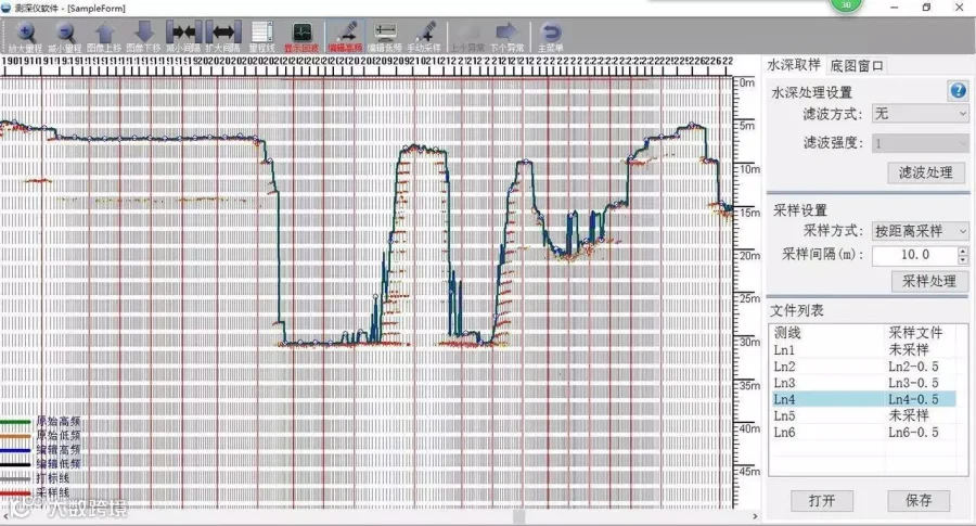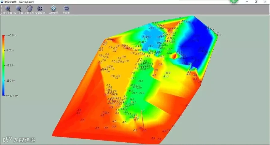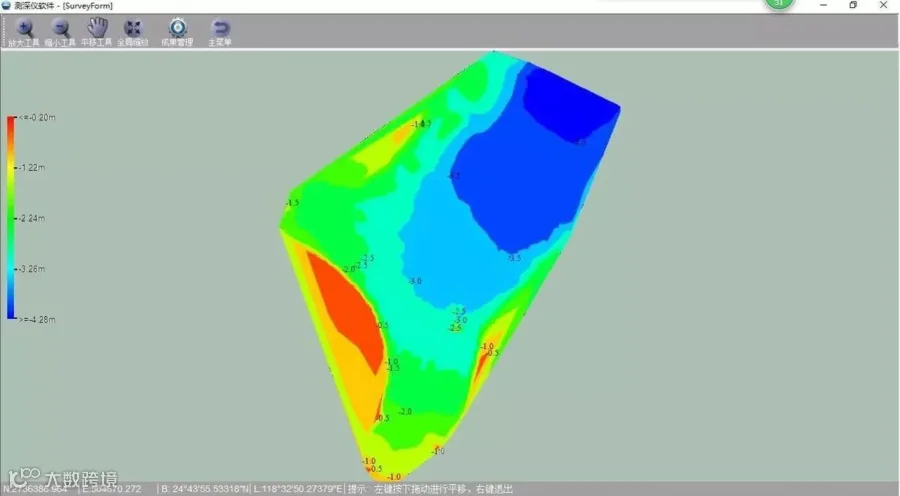 同时,由于前期的石块开采,水下高程变化大,垂直落差最大达30多米,这非常考验iBoat BM1智能无人测量船搭载的HD-510测深仪底跟踪性能。由下图可以看出,iBoat BM1智能无人测量船搭载的HD-510测深仪稳定准确的测出水深垂直变化,为用户提供最真实丰富的测量数据。