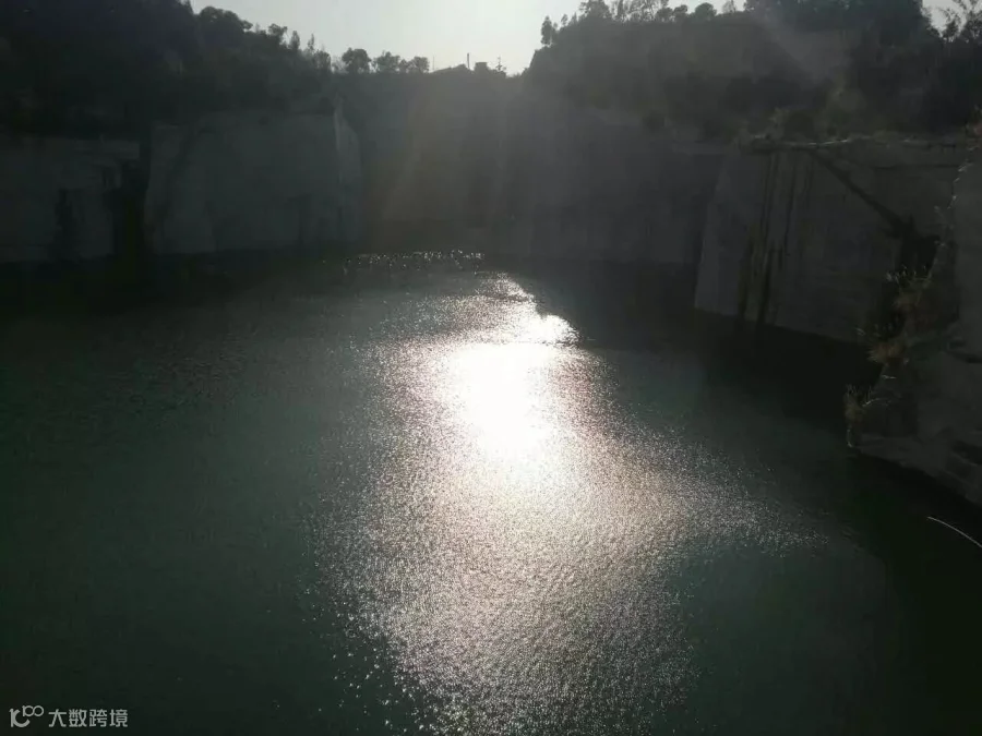 当天演示的水坑长度在 100 米左右,宽度在 50 米左右,是个不规则的区域。该水坑最浅水域是 0.5 米左右,最深的达到 30 多米。四周是比较高的峭壁,有几十米高度。