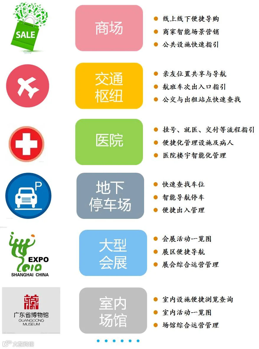 面对大型购物商场、地下停车场、交通枢纽(飞机场及火车站等)、展会会场、综合办公楼、图书馆、医院、智慧景区(博物馆、游乐场)等不同的应用场景,都市圈室内地图可提供具有针对性的解决方案。