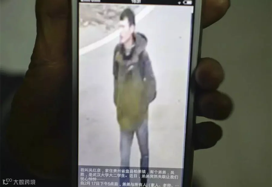 目前,从贵州老家赶到武汉的吴胜父母正想尽一切办法找回儿子。如果您知道这个同学的行踪,或曾经见过他,请尽快与吴胜父母联系。联系电话:吴友权18082929893,何凤琼18216977330。