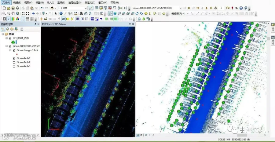 下面,我们将通过全景移动测量系统采集的高精度高密度三维激光点云和高分辨率全景影像,研究自动化提取行道树数据。