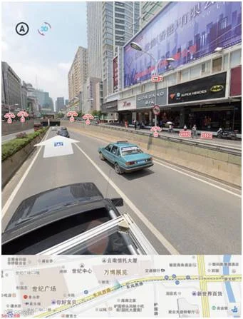 传统的车载导航都是借助二维地图,只在重要路口处提供图片或动画信息,很难做到对车辆进行车道级别的引导。移动测量系统特别是搭载了高密度激光器和高精度惯导的车载设备,能够获取高质量的激光点云和高清晰影像,借助点云与影像的高精度匹配算法,得到行驶道路匹配后的激光全景。在此基础上,结合车辆高精度的定位设备,能够为车辆提供车道级的高精度导航服务,提高导航质量和用户体验。