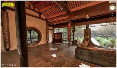 借助地面扫描仪或移动测量系统能够对旅游景区进行扫描,获取景区的点云及影像数据,通过实景生产工具完成三维实景建模,利用海达数云自主研发的三维展示平台进行发布展示,在激光全景上能够对景区场景进行浏览、跳转,在重要的场景或文物(如杜甫雕像)可加载说明文字、音频、视频等信息,提供交互式的信息增强服务,用户借助手机或网站能够浏览景区的实景信息,并提供一定的可视化交互,实现在线旅游的目的。