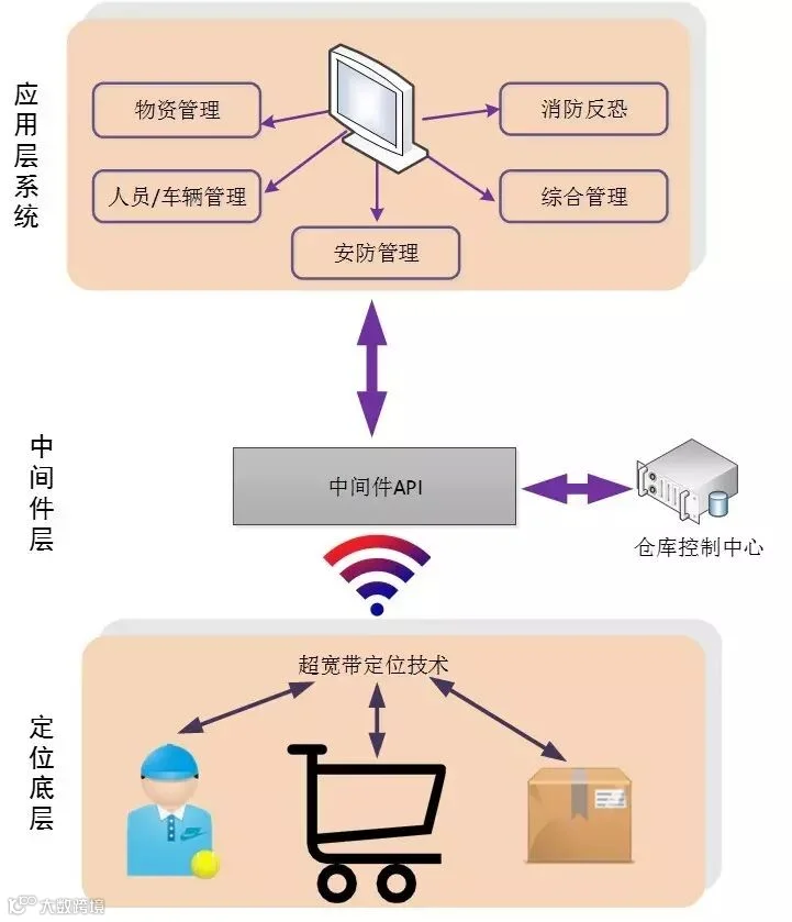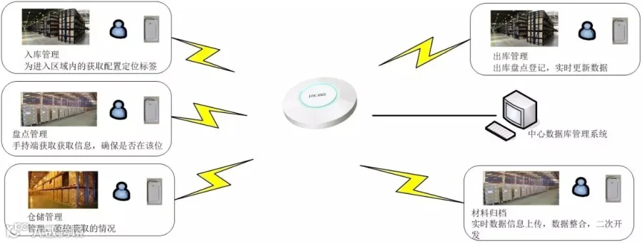 基于U-Loc室内厘米级实时定位系统的仓储物流管理方案结构图