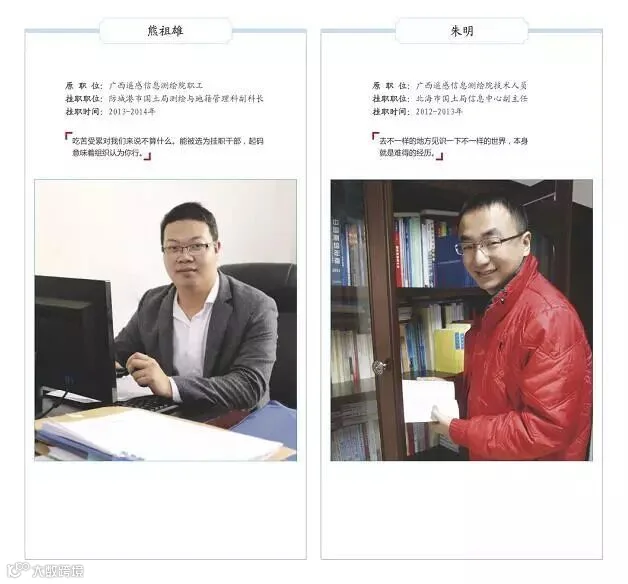 小熊口中的“组织”,就是广西测绘地理信息局(以下简称广西局)。广西局选派年轻干部挂职锻炼的历史由来已久。但规模式的集中派遣,应当追溯到2012年,这一年开始,为了推动全区地级市增挂测绘局的牌子,增强测绘的应用力度,广西局向全区14个地市都派了挂职干部。