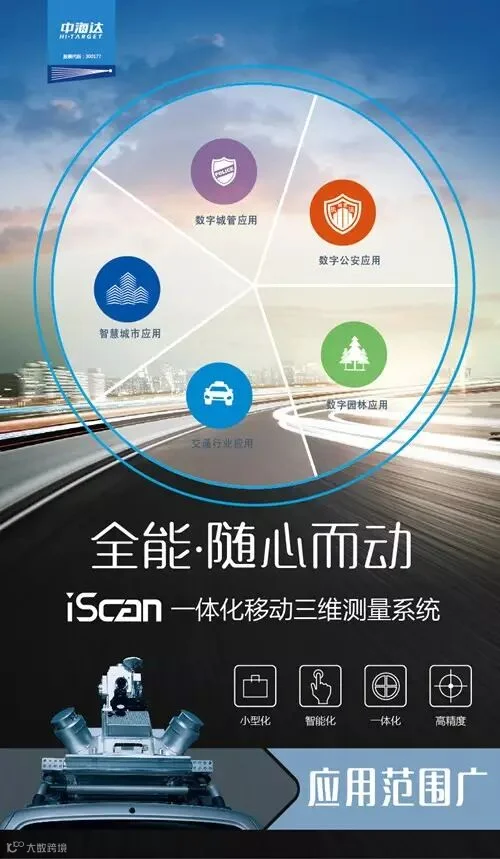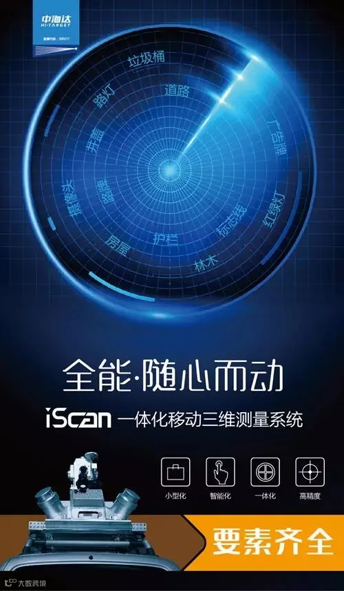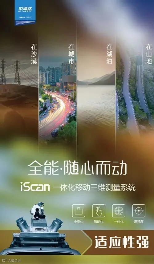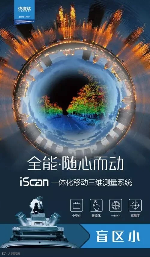 iScan一体化移动三维测量系统是中海达自主研制的新型测绘装备,该系统将三维激光扫描设备、卫星定位模块、惯性导航装置、里程计、360度全景相机,总成控制模块和高性能计算机高度集成,封装在刚性平台之中,可方便安装于汽车、船舶或其他移动载体上,在载体高速移动过程中,快速获取高精度定位定姿数据、高密度三维点云和高清连续全景影像数据。