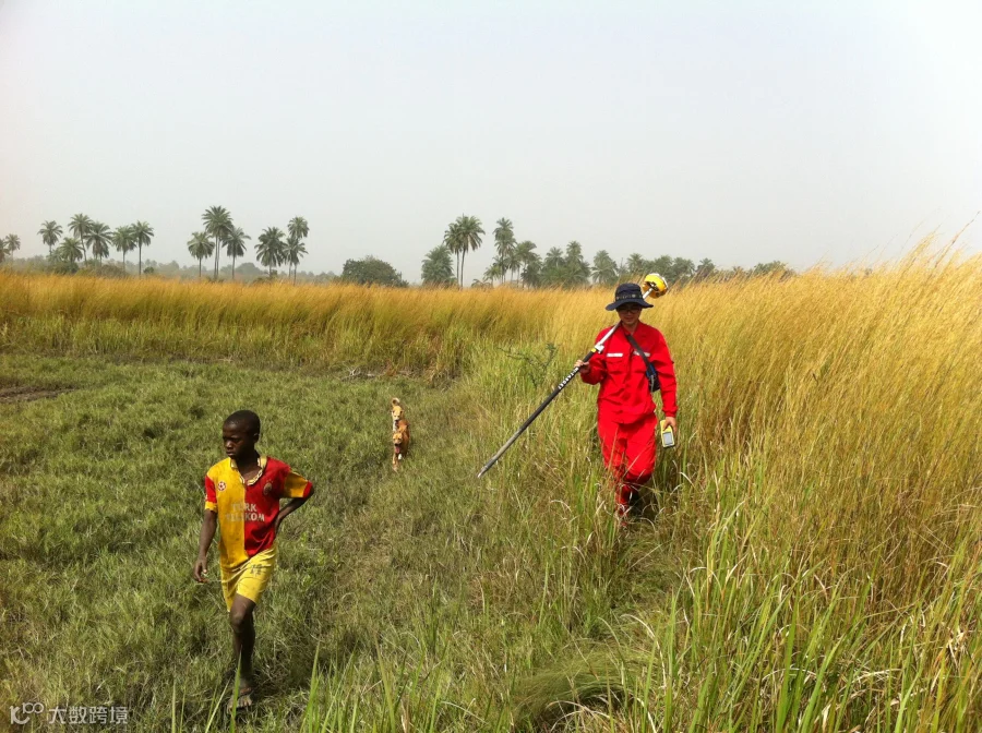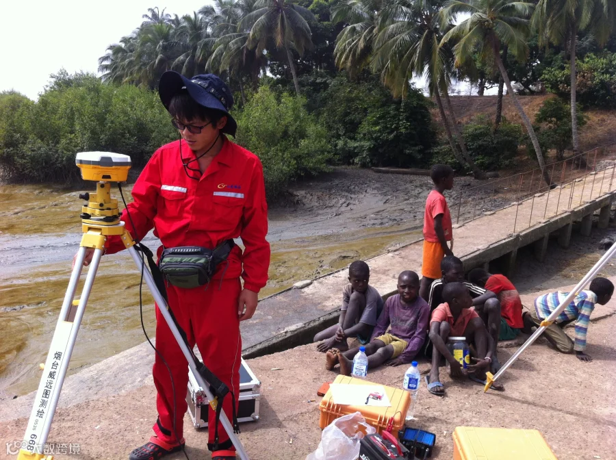 当天下午3点,身处几内亚的队长郑家伟和技术支持李伟平等三人一起,对努涅兹河港码头水域及陆域进行测量。