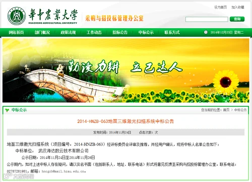华中农业大学Z+F三维激光扫描仪采购项目中标公告