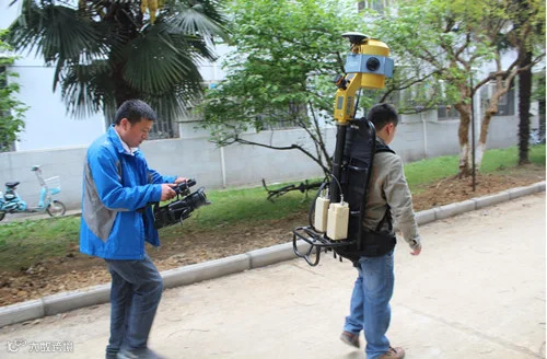 央视记者拍摄记录了移动测量系统的实际使用流程