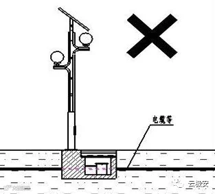 3)、清除灯具安置处的杂物,依据地基图,画线确定地基坑长度及宽度。地基长边或短边的中心线必须垂直于路面走向。;