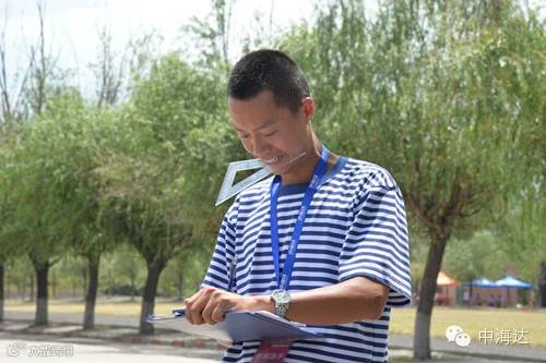 烈日当空,皮肤晒得黝黑,但这位男汉子依旧坚持练习