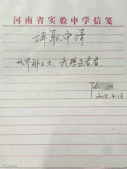 这两天,河南一名女老师的辞职信火爆了朋友圈,还被评为“史上最具情怀的辞职信,没有之一...”