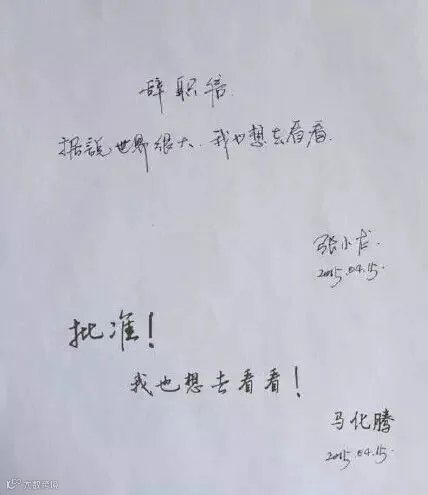 于是,各种版本辞职信出现了,