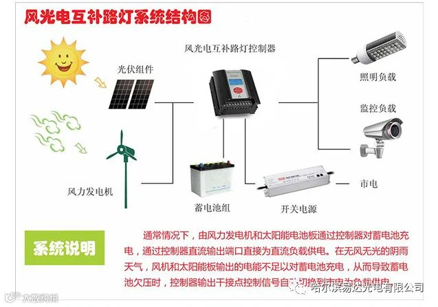 市电互补型光伏发电系统,就是在独立光伏发电系统中以太阳能光伏发电为主,以普通220V交流电补充电能为辅。这样光伏发电系统中太阳能电池和蓄电池的容量都可以设计得小一些,基本上是当天有阳光,当天就用太阳能发的电,遇到阴雨天时就用市电能量进行补充。我国大部分地区多年都有2/3以上的晴好天气,这样形式即减小了太阳能光伏发电系统的一次性投资,又有显著的节能减排效果,是太阳能光伏发电在现阶段推广和普及过程中的一个过度性的好办法。