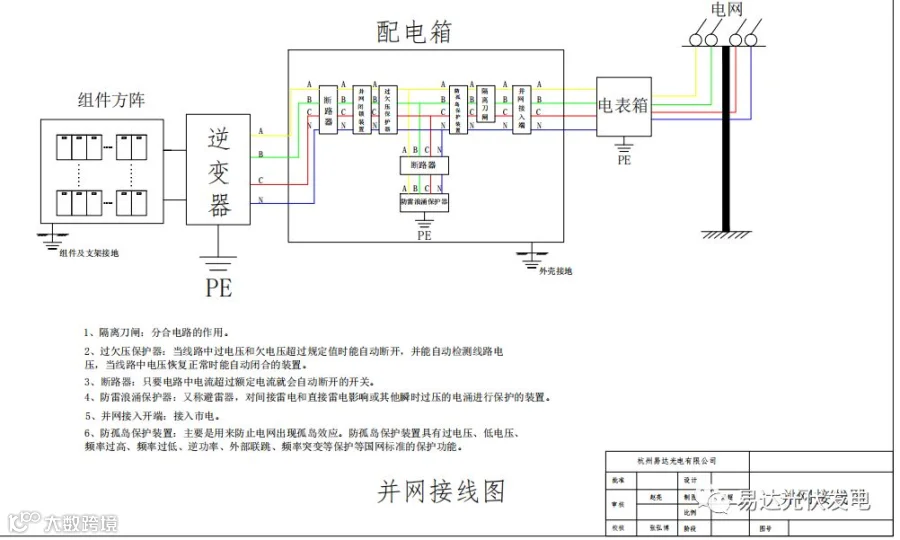 组件接地,支架接地,逆变器接地,并网箱接地,电表箱接地,一个不能少。