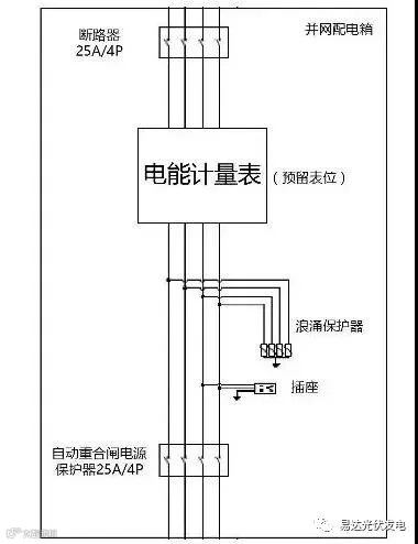 电网公司要求在逆变器至电网间接入自动重合闸电源保护器,这里选择25A/4P的规格。