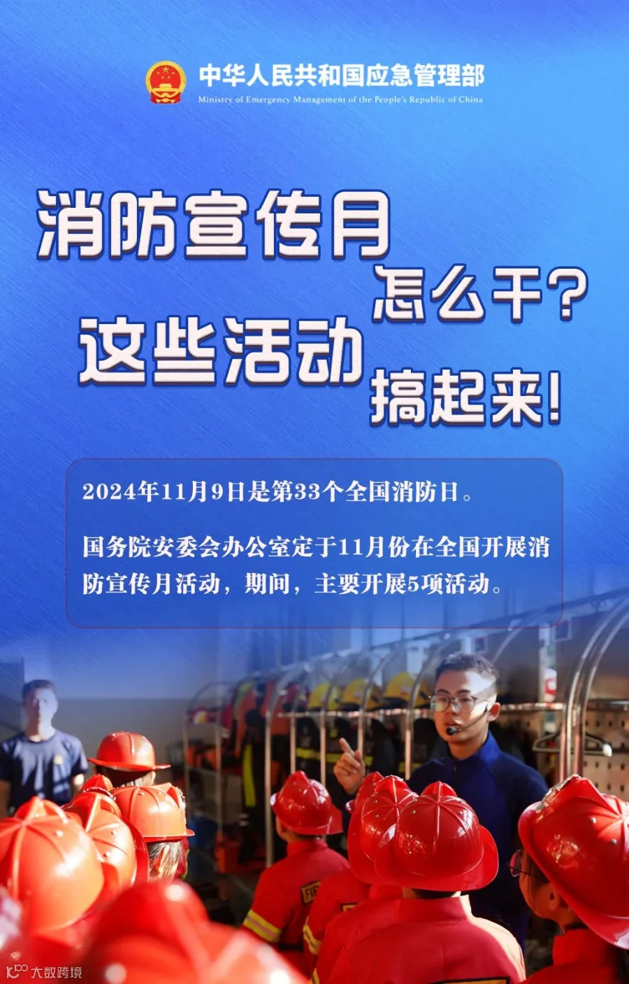 ,活动主题为全民消防、生命至上,2024年11月9日是第33个全国消防日。全国消防宣传月怎么干?一起了解↓↓↓