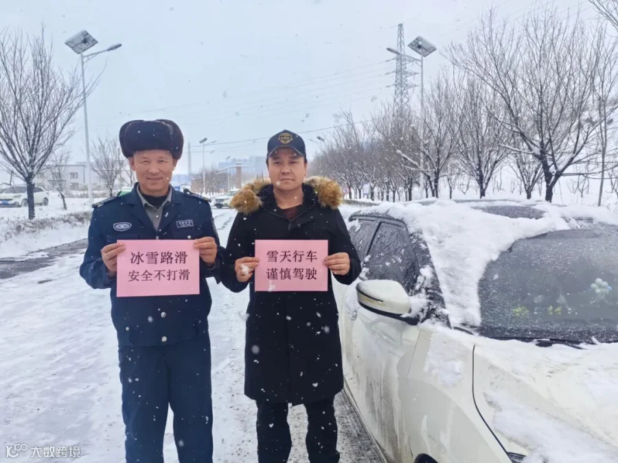 12月25日,永宁煤化保卫组人员正在为职工宣传雪天行车的注意事项,嘱咐职工安全驾驶。