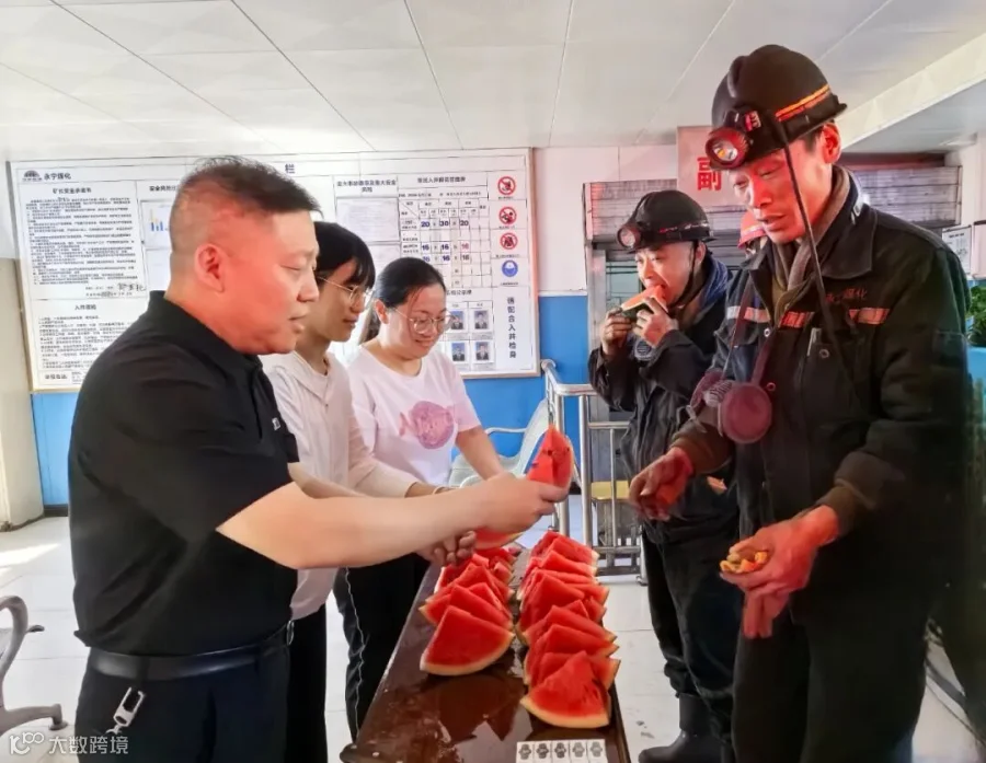 “来来,师傅,辛苦了,吃块西瓜解解乏,井下作业要注意安全呀。”