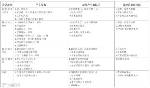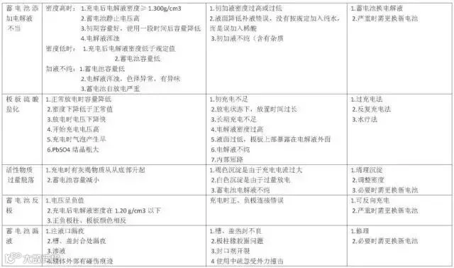 铅酸蓄电池常见故障分析及处理方法: