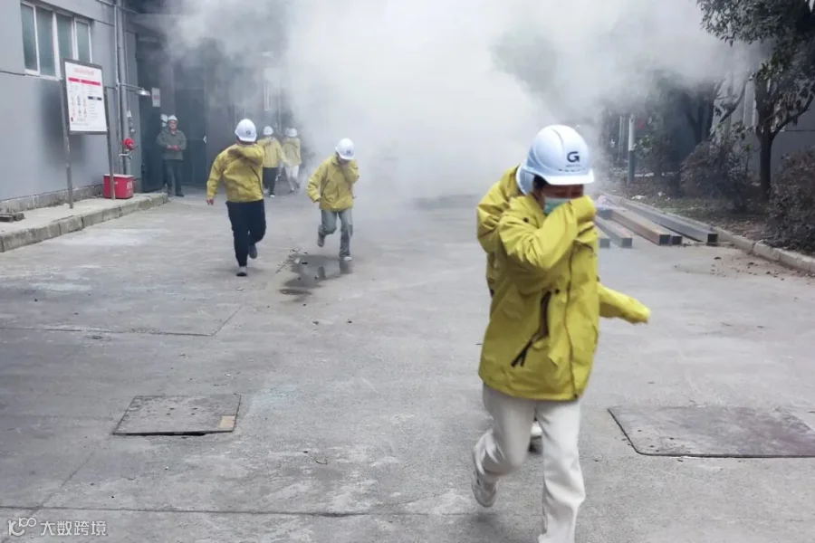 此次演练模拟了园区发生火情的应急场景。出现火情后,工作人员立即启动灭火和应急疏散预案,各小组各司其职,指挥参加演习的人员沿着指定通道快速、有序地撤离到安全空旷的地带,整个过程紧张有序,应急响应迅速及时。