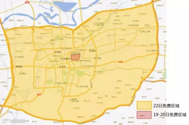 无车区设定为泉城路(榜棚街至天地坛街)路段。该路段在19日5:00至20日19:00,22日9:00-19:00时段内禁止机动车通行。