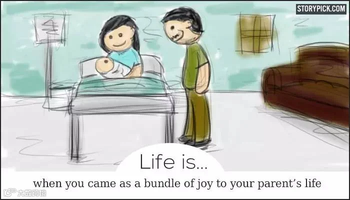 人生是……你来到这个美丽的世界,从此成为父母生活中的幸运大礼包。