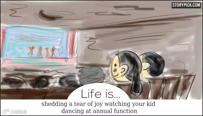 人生是……每年学校的汇报演出孩子在上面跳舞,你在下面不知道为啥自己能高兴到掉眼泪、