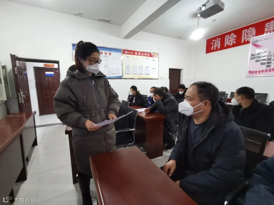 12月11日,龟兹矿业机运队班前会上,职工们正在抢答有关党的二十大题目。
