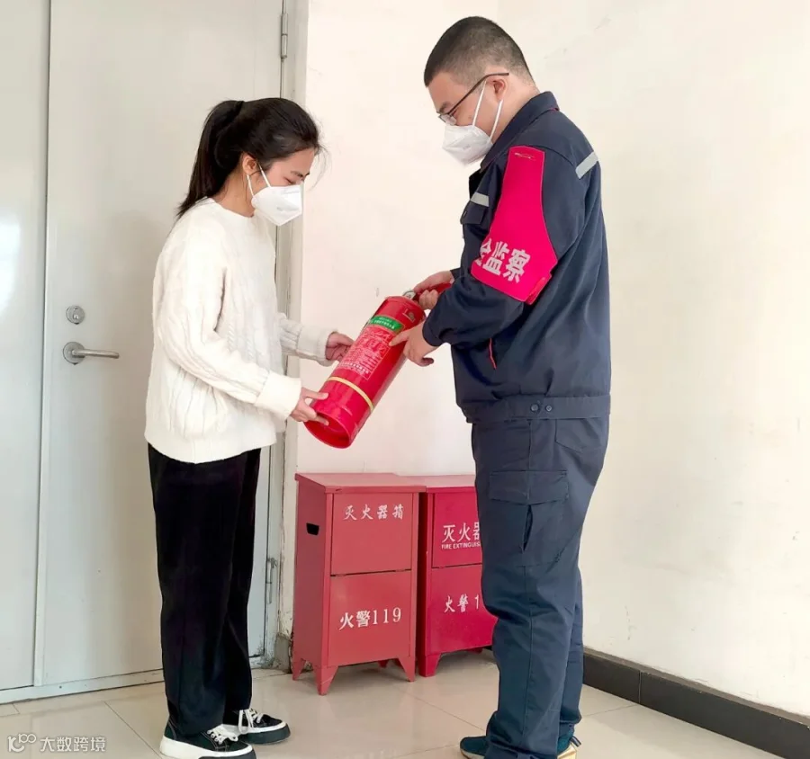提问办公区域灭火器数量,随机抽查人员灭火器的使用方法......