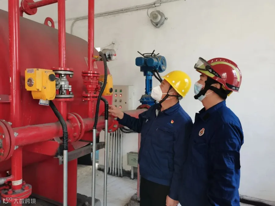 检查过程中,消防员分组查看各区域内消防器材和设施的使用情况,及时排除消防隐患,确保设备设施安全平稳运行。