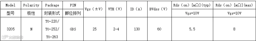 一、3205场效应管特征
