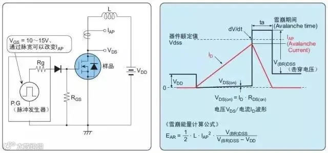 在介质负载的开关运行断开时产生的回扫电压,或者由漏磁电感产生的尖峰电压超出功率MOSFET的漏极额定耐压并进入击穿区而导致破坏的模式会引起雪崩破坏。