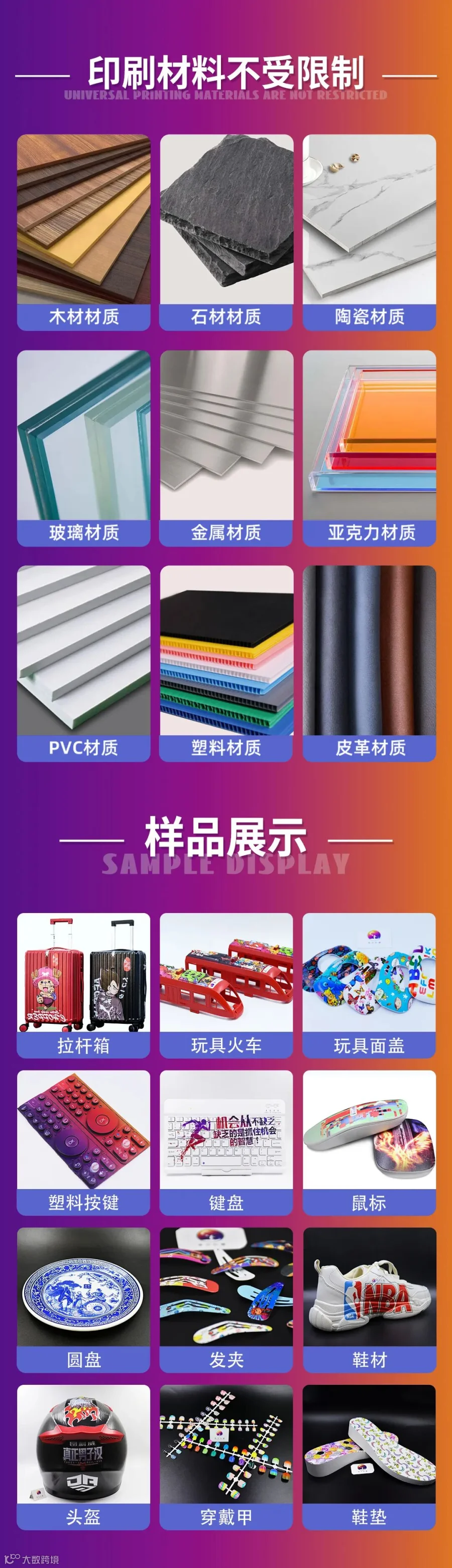 可在玻璃、金属、木材、塑料、陶瓷、亚克力、皮革等材料上直接打印,突破传统印刷对材质的限制。