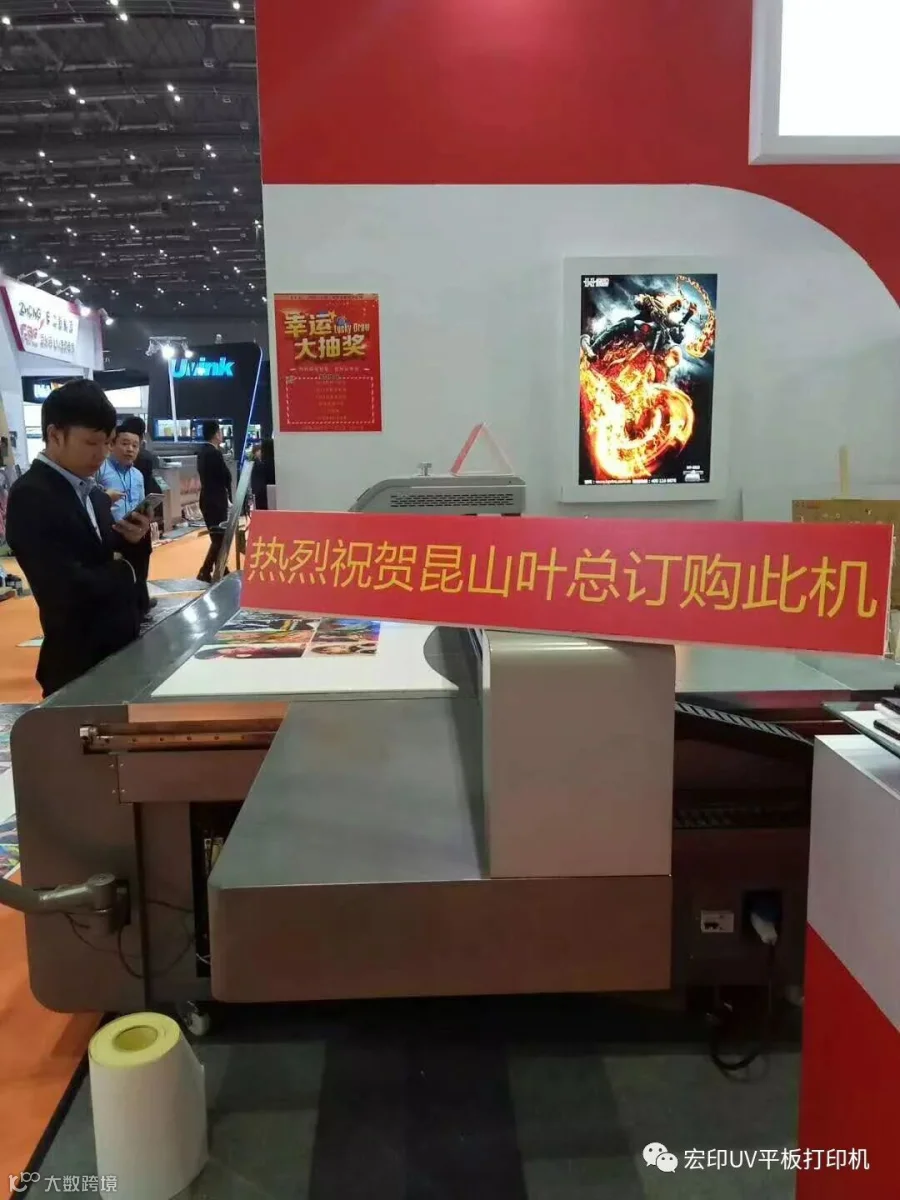 这是一个全新的时代,UV平板打印机在这个时代得到了广泛的运用,几乎所有材料都可以打印,一体成型,宏印此次上海广印站携理光G5喷头和赛尔1201喷头的成熟机型,在展会上掠夺了众多客户的眼光,不仅仅驻足参观,在展会上成单26台次,样机也被江苏上海客户订购一空。