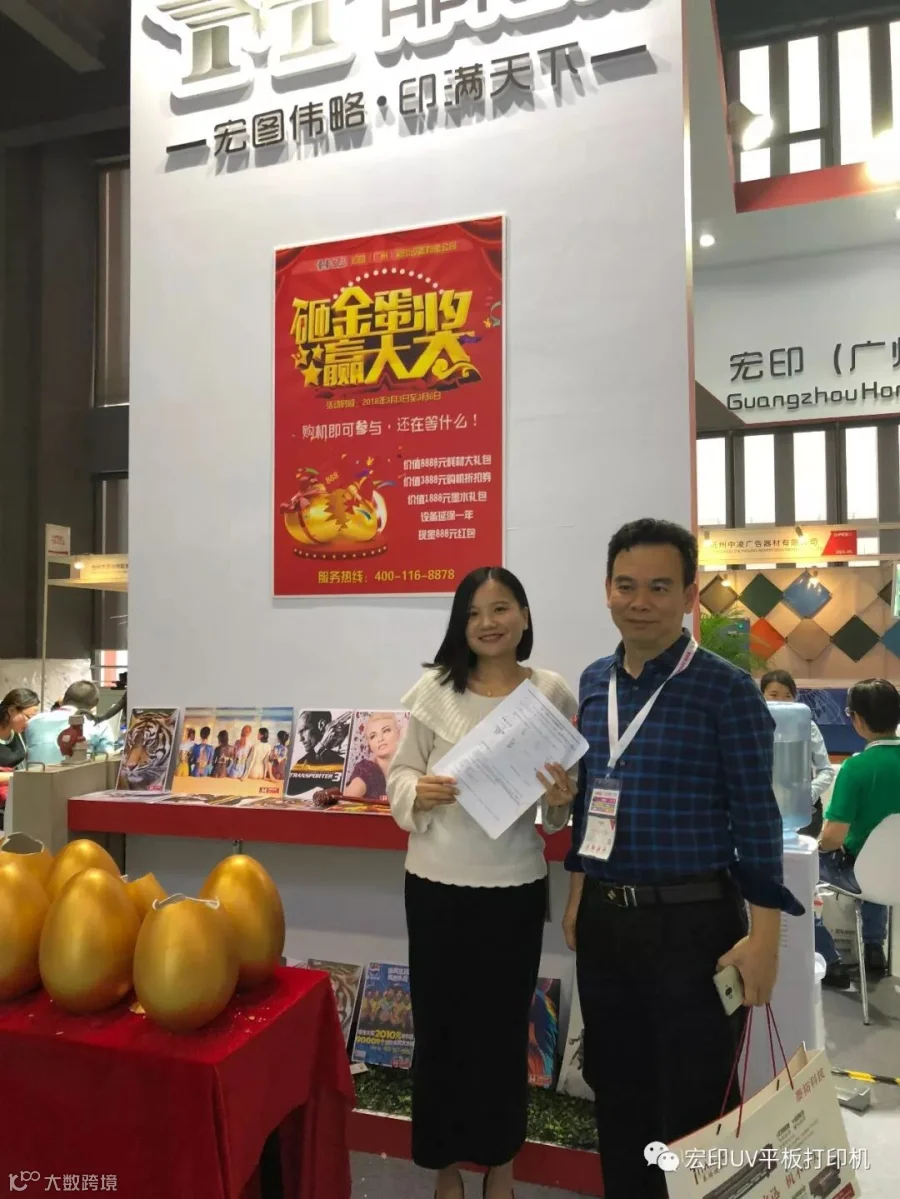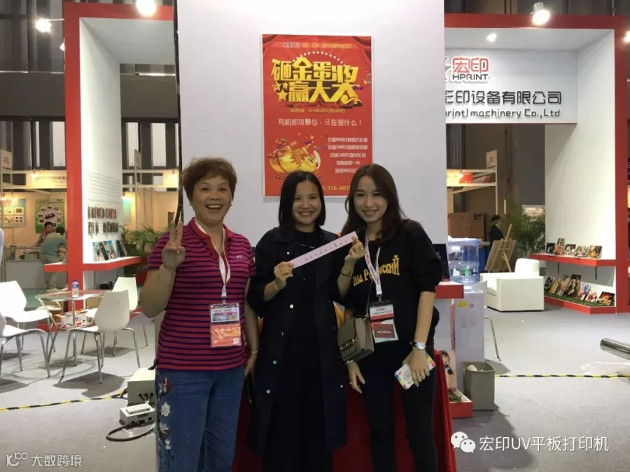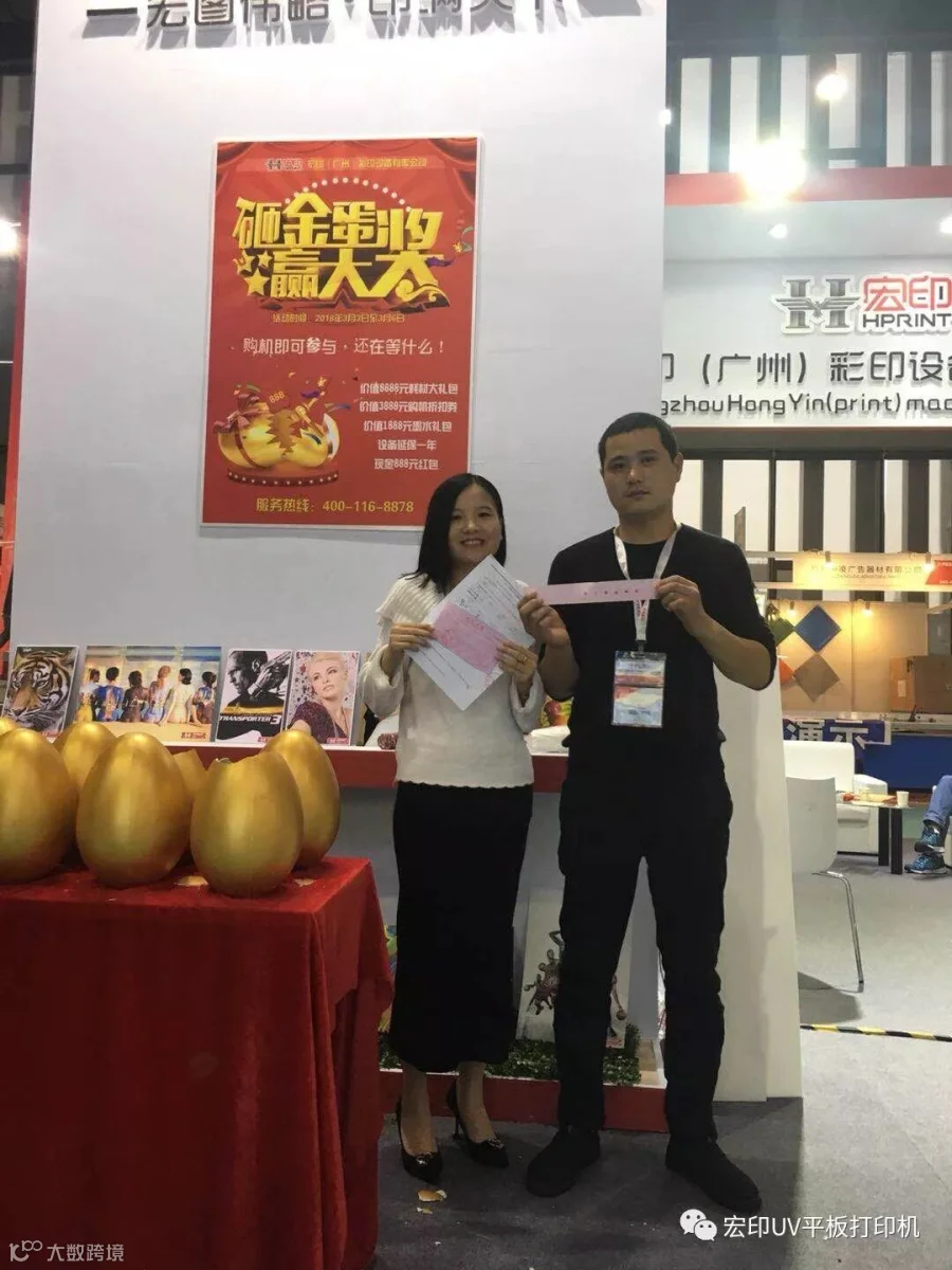 展会现场,三台UV平板设备备受关注。来宏印展位了解机器详情、打样的客户络绎不绝,展会当天上午HY-2513理光G5即签单达6台之多。连续几天下来,订单近20台,成果斐然。