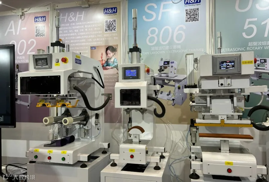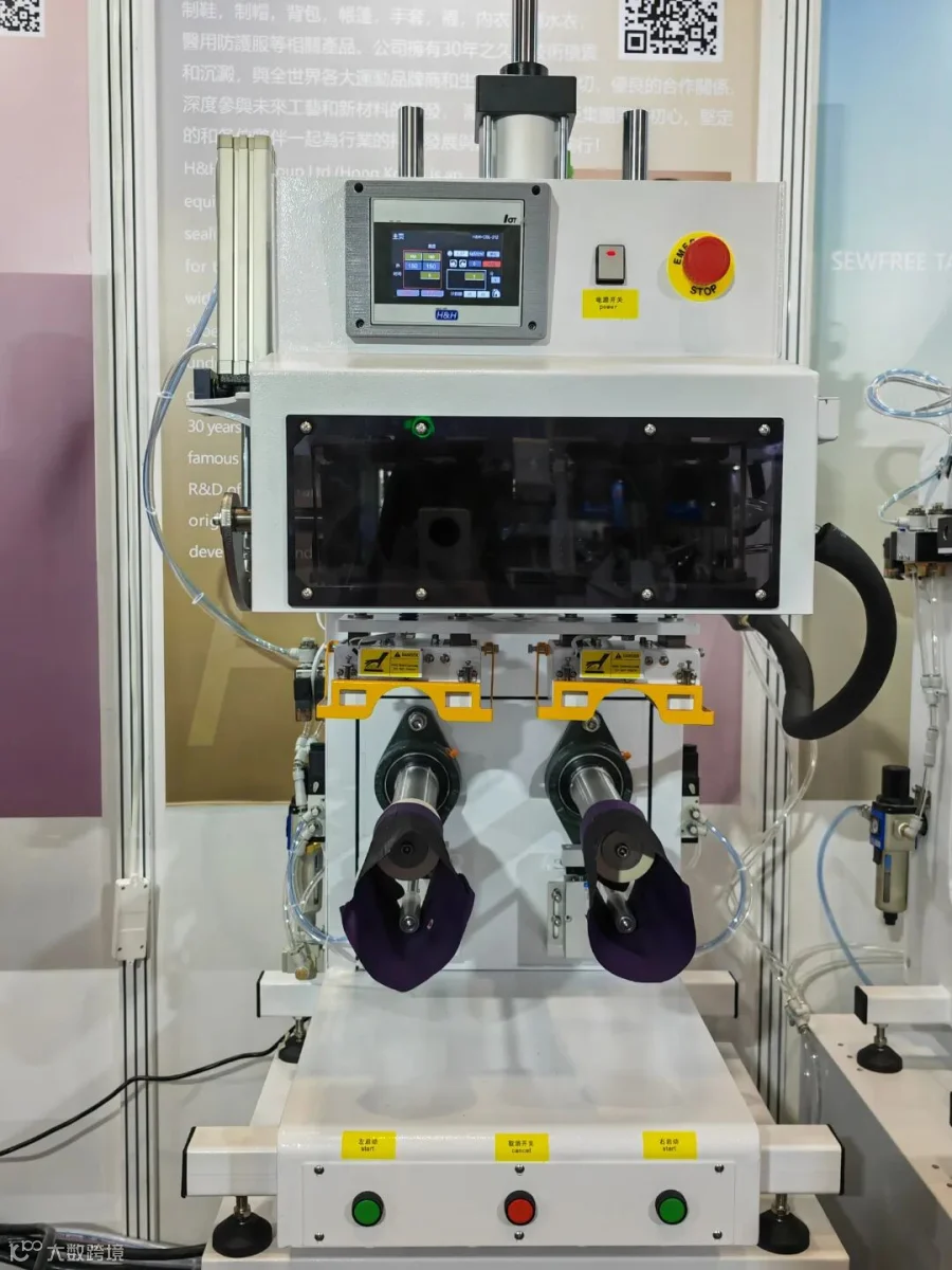 首次展出的新产品CSL-212全自动旋转弧形冷热压机,吸引了众人驻足体验。CSL-212融入物联网技术,让袖口压胶工艺更智能。左右模具加热可独立控制,温度精确,分布均匀;可靠的气动冷热压板换转,数码控制每一次的旋转动作,精确稳定,波动极小;彩色触摸屏界面,可以快速调节所需参数,适用于所有可热压材料。CSL-212单热模式每天可加工700件,冷热模式下产量达300件/天。