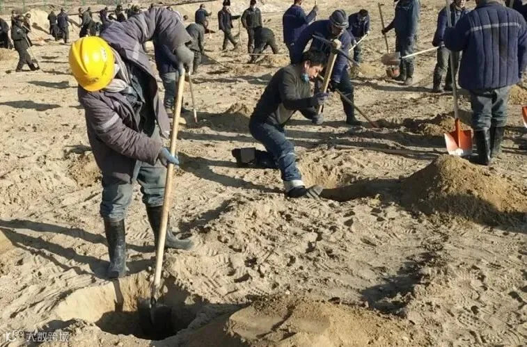 1月2日,榆树岭煤矿组织职工开展义务劳动,为开春种植树苗做准备。